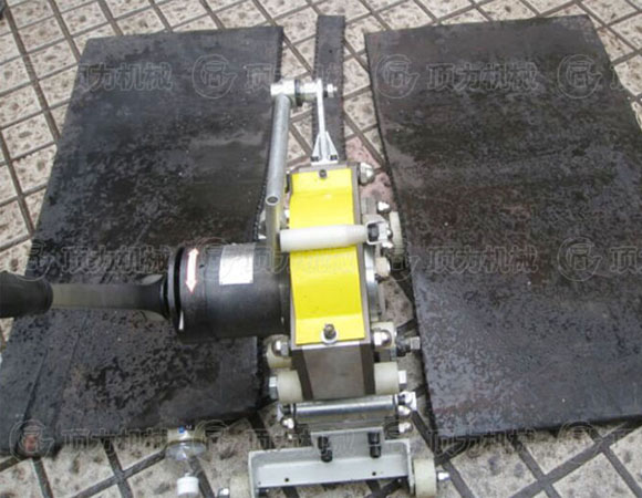 特別提示:在皮帶切割到中途時(shí),要改變方向(退刀)必須將扳手向前進(jìn)方向用力,使雙向棘輪扳手上的撥桿處于不受力狀態(tài)方可輕松改變方向。若不如此操作,由于在停頓時(shí),橡膠有很大的回彈力壓在雙向棘輪扳手上棘輪上,撥桿是無法撥動的,使勁硬撥方向撥桿會造成設(shè)備損壞。